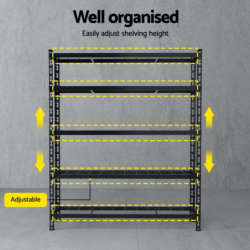 $86.47The Giantz 5-Tier Storage Rack is a versatile and durable shelving unit that offers a storage solution for your home, garage, or workspace. With a 150kg weight capacity per shelf, it's ideal for heavy-duty items like tools, storage bins, and equipment. Made from anti-rust steel, this shelving system is designed to withstand wear and corrosion, ensuring long-lasting use. The adjustable beams allow you to customise the height between shelves to suit various storage needs. The boltless assembly makes for an easy setup, with no tools required.