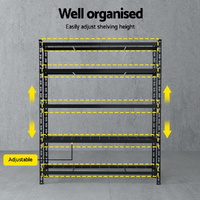 Its middle supporting beam adds extra stability, while the expandable design allows you to increase your storage capacity by adding extra units as required. Whether you need more space for your home or a larger setup in your garage or workshop, the Giantz 5-Tier Storage Rack provides the perfect, space-saving solution.