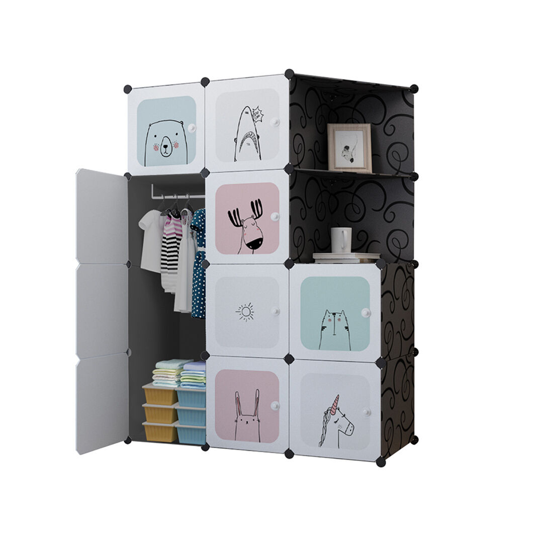 10 Cubes Portable Wardrobe Divide-Grid Modular Storage Organiser Foldable Closet with Doors