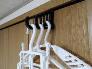 It is a plastic hook that plugs into the top of a wooden door or storage door. Nails and adhesive stickers are not required. Indoor wooden doors with a thickness of 3 to 3.5cm are easy to attach and remove anywhere.