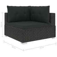 This rattan sofa set combines style and functionality, and will become the focal point of your garden or patio. The whole furniture set is designed to be used outdoors year-round. Thanks to the weather-resistant and waterproof PE rattan, the lounge set is easy to clean, hard-wearing and suitable for daily use. The seat set features a sturdy powder-coated steel frame, which is highly durable. It is also lightweight and modular, which makes it completely flexible and easy to move around to suit any setting. The thick, removable cushions are highly comfortable. Delivery includes 5 corner sofas, 3 centre sofa, 1 ottoman, 1 tea table, 9 seat cushions and 13 back cushions.
