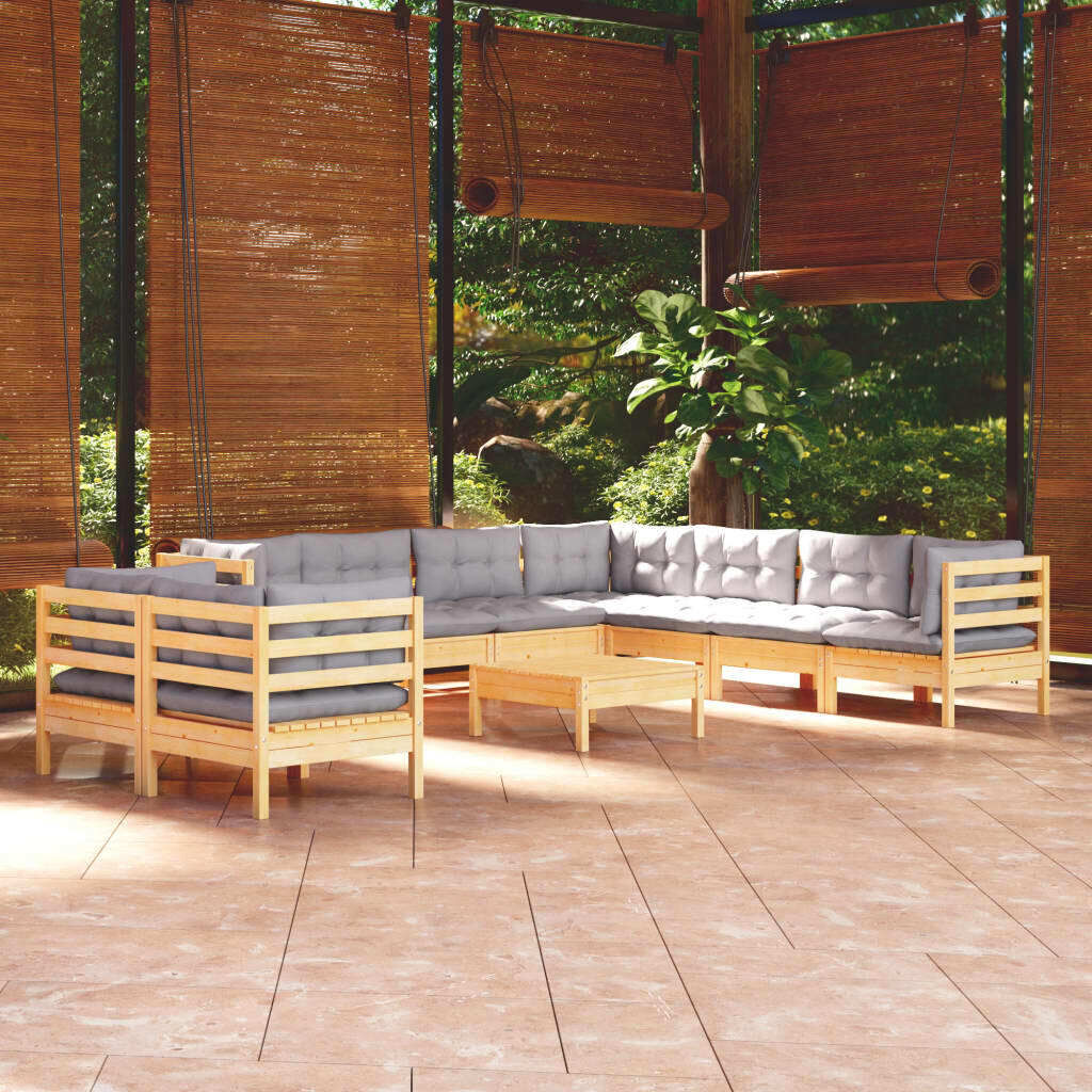 10 Piece Garden Lounge Set with Cushions Solid Pinewood
