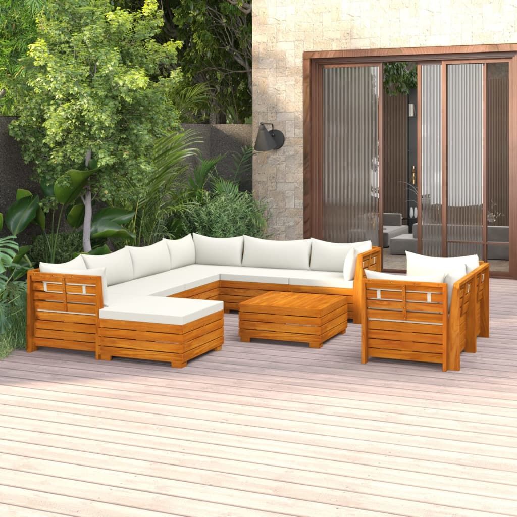 This garden lounge set is an excellent choice for relaxing and enjoying the weather, taking a nap, or chatting with your family or friends. With a timeless slatted design, the wooden lounge set adds a touch of rustic charm to your patio, terrace or garden. Made of solid acacia wood, the outdoor furniture set is weather-resistant and highly durable. Combined with the thickly-padded cushions, this sofa set provides the utmost comfort. You can combine it with other modular segments to create your own personal garden lounge set configurations! Note: In order to extend the life of your outdoor furniture, we recommend you to protect it with a waterproof cover.