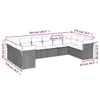 10 Piece Garden Sofa Set with Cushions Beige Poly Rattan