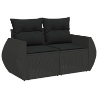 10 Piece Garden Sofa Set with Cushions Black Poly Rattan