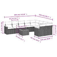 10 Piece Garden Sofa Set with Cushions Black Poly Rattan
