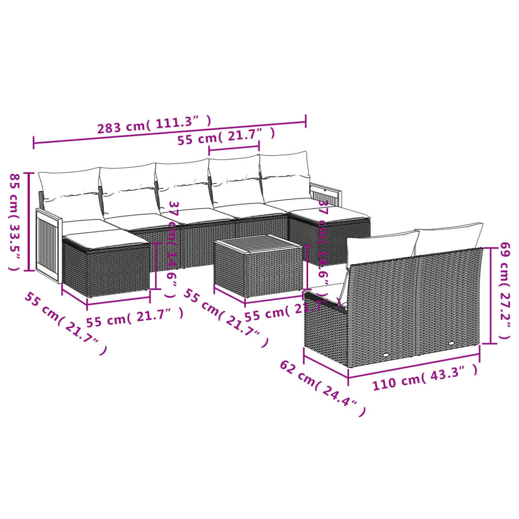 $938.11This garden sofa set is the perfect addition to your backyard, terrace, or patio, providing a comfortable and inviting space for chatting with family and friends or simply relaxing and enjoying the outdoors. Durable material: PE rattan, also known as poly rattan, is a strong, low-maintenance synthetic material that looks like natural rattan. It's lightweight, easy to clean, and commonly used for outdoor furniture due to its durability and weather-resistant properties.Comfortable seat experience: This outdoor furniture, complete with thickly padded cushions, offers a comfortable seating experience.Stable and easy-to-clean tabletop: This garden table has an acacia wood top that is sturdy, durable, and easy to clean with a damp cloth.Removable and washable cover: These seat cushions feature removable covers for easy washing and maintenance.Modular design: This outdoor furniture set has a modular design, making it completely flexible and easy to move around, so you can create a customised outdoor furniture arrangement. Good to know:To make sure your outdoor furniture stays beautiful, we recommend protecting it with a waterproof cover.