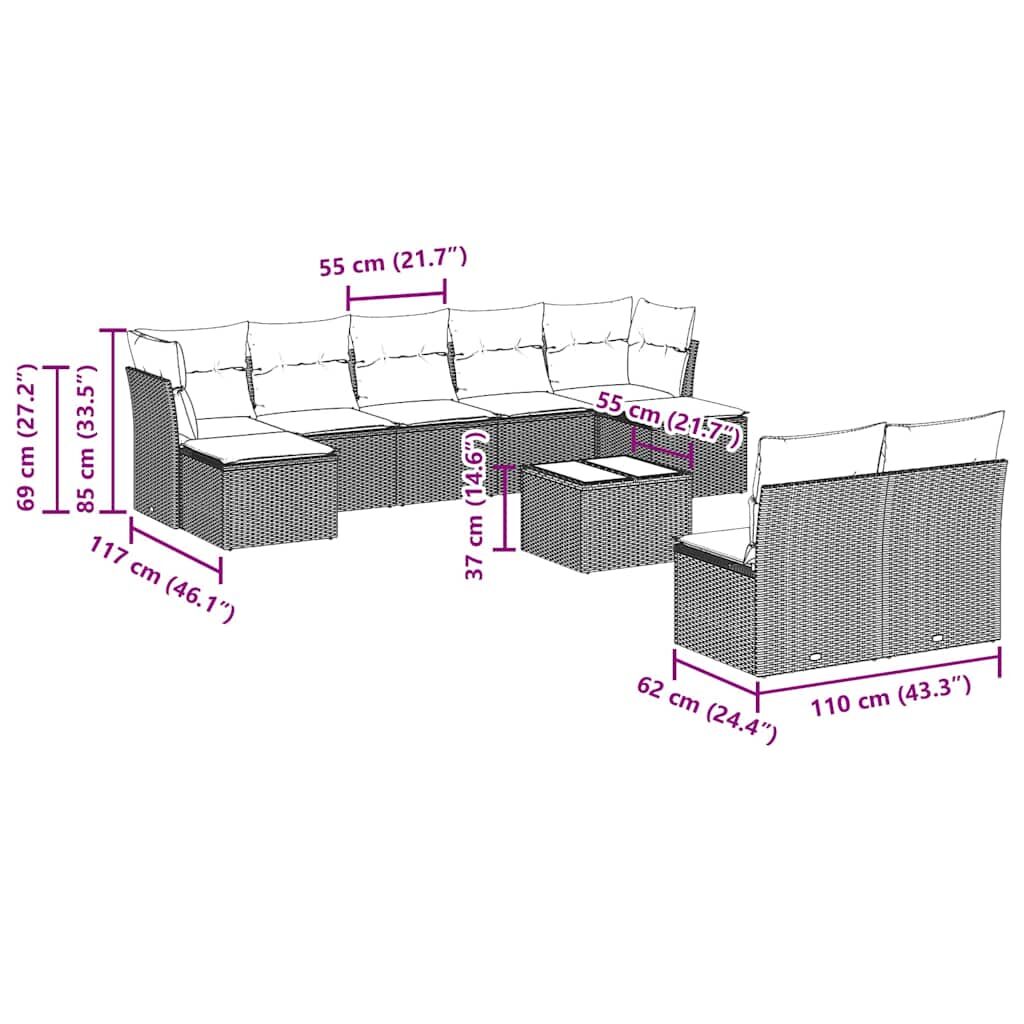$1,023.65This garden sofa set is the perfect addition to your backyard, terrace, or patio, providing a comfortable and inviting space for chatting with family and friends or simply relaxing and enjoying the outdoors. Durable material: PE rattan, also known as poly rattan, is a strong, low-maintenance synthetic material that looks like natural rattan. It's lightweight, easy to clean, and commonly used for outdoor furniture due to its durability and weather-resistant properties.Storage function with water-resistant bag: Each garden seat features storage space under the seat, complete with a water-resistant bag for storing cushions, toys, and other items. The inner bags have a top cover and can be securely fastened to the seats with hook-and-loop fasteners for added stability.Glass tabletop: The outdoor table's top is made from strong and durable tempered glass, making it easy to clean with a damp cloth and adding a touch of elegance to your outdoor space.Removable and washable cover: These seat cushions feature removable covers for easy washing and maintenance.Modular design: This outdoor furniture set has a modular design, making it completely flexible and easy to move around, so you can create a customised outdoor furniture arrangement. Good to know:To make sure your outdoor furniture stays beautiful, we recommend protecting it with a waterproof cover.
