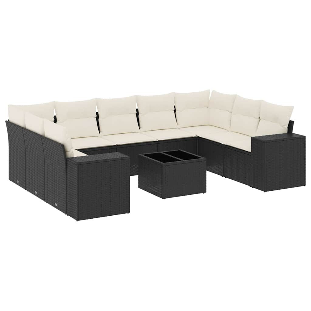 10 Piece Garden Sofa Set with Cushions Black Poly Rattan