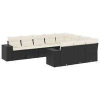 10 Piece Garden Sofa Set with Cushions Black Poly Rattan