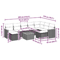 $771.73This garden sofa set is the perfect addition to your backyard, terrace, or patio, providing a comfortable and inviting space for chatting with family and friends or simply relaxing and enjoying the outdoors. Durable material: PE rattan, also known as poly rattan, is a strong, low-maintenance synthetic material that looks like natural rattan. It's lightweight, easy to clean, and commonly used for outdoor furniture due to its durability and weather-resistant properties.Storage function with water-resistant bag: The garden furniture features storage space under the seat, complete with a water-resistant bag for storing cushions, toys, and other items. The inner bag can be securely fastened to the outdoor furniture with hook-and-loop fasteners for added stability.Stable and easy-to-clean tabletop: This garden table has an acacia wood top that is sturdy, durable, and easy to clean with a damp cloth.Removable and washable cover: These seat cushions feature removable covers for easy washing and maintenance.Modular design: This outdoor furniture set has a modular design, making it completely flexible and easy to move around, so you can create a customised outdoor furniture arrangement. Good to know:To make sure your outdoor furniture stays beautiful, we recommend protecting it with a waterproof cover.
