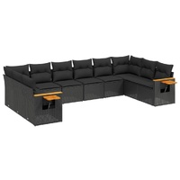 10 Piece Garden Sofa Set with Cushions Black Poly Rattan