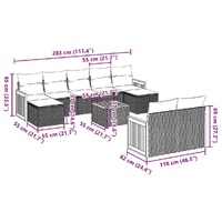 $1,016.13This garden sofa set is the perfect addition to your backyard, terrace, or patio, providing a comfortable and inviting space for chatting with family and friends or simply relaxing and enjoying the outdoors. Durable material: PE rattan, also known as poly rattan, is a strong, low-maintenance synthetic material that looks like natural rattan. It's lightweight, easy to clean, and commonly used for outdoor furniture due to its durability and weather-resistant properties.Storage function with water-resistant bag: The garden furniture features storage space under the seat, complete with a water-resistant bag for storing cushions, toys, and other items. The inner bag can be securely fastened to the outdoor furniture with hook-and-loop fasteners for added stability.Stable and easy-to-clean tabletop: This garden table has an acacia wood top that is sturdy, durable, and easy to clean with a damp cloth.Removable and washable cover: These seat cushions feature removable covers for easy washing and maintenance.Modular design: This outdoor furniture set has a modular design, making it completely flexible and easy to move around, so you can create a customised outdoor furniture arrangement. Good to know:To make sure your outdoor furniture stays beautiful, we recommend protecting it with a waterproof cover.