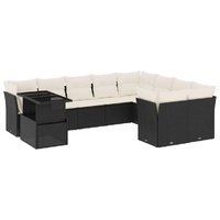 10 Piece Garden Sofa Set with Cushions Black Poly Rattan