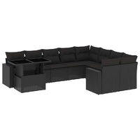10 Piece Garden Sofa Set with Cushions Black Poly Rattan