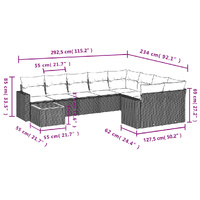 10 Piece Garden Sofa Set with Cushions Grey Poly Rattan