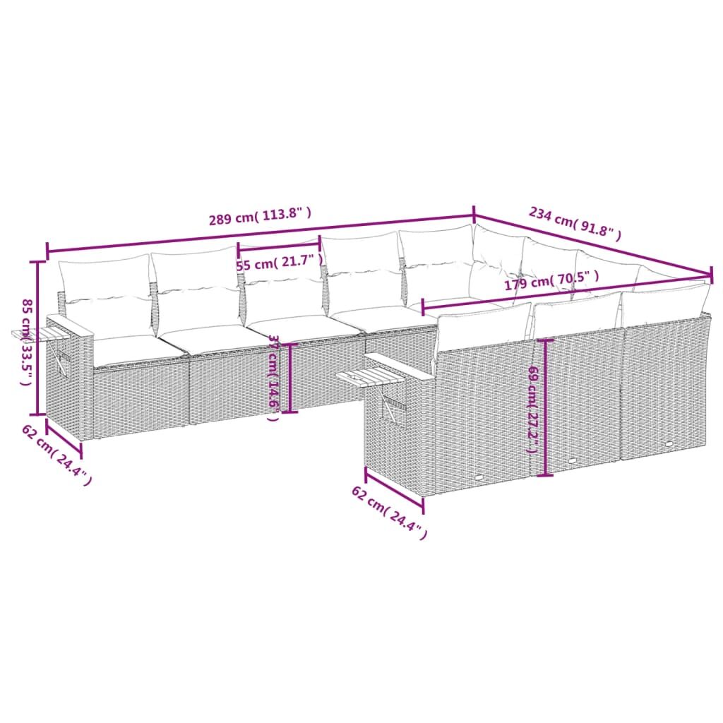 10 Piece Garden Sofa Set with Cushions Grey Poly Rattan