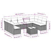 10 Piece Garden Sofa Set with Cushions Grey Poly Rattan