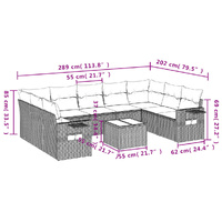10 Piece Garden Sofa Set with Cushions Grey Poly Rattan