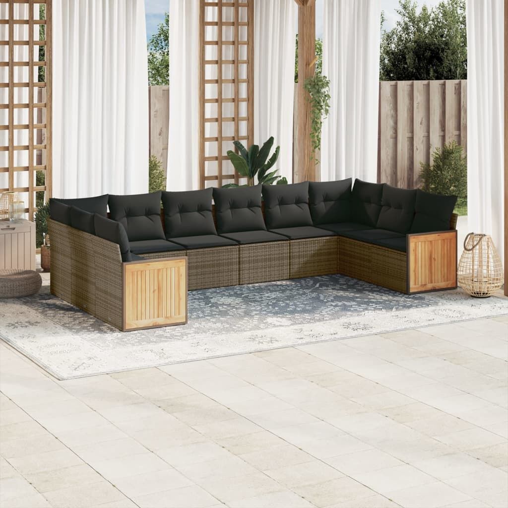 10 Piece Garden Sofa Set with Cushions Grey Poly Rattan
