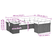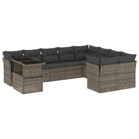 10 Piece Garden Sofa Set with Cushions Grey Poly Rattan