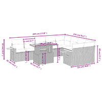 This garden sofa set is the perfect addition to your backyard, terrace, or patio, providing a comfortable and inviting space for chatting with family and friends or simply relaxing and enjoying the outdoors. Durable material: PE rattan, also known as poly rattan, is a strong, low-maintenance synthetic material that looks like natural rattan. It's lightweight, easy to clean, and commonly used for outdoor furniture due to its durability and weather-resistant properties.Adjustable tabletop: The tabletop can be lifted up to make the table higher, which transforms the outdoor table from a coffee table to a dining table. It's perfect for having guests over or eating meals outside.Convenient side table: This outdoor furniture features a foldable side table with a gas spring on the armrests, providing a convenient spot to keep your essentials within easy reach.Removable and washable cover: These seat cushions feature removable covers for easy washing and maintenance.Modular design: This outdoor furniture set has a modular design, making it completely flexible and easy to move around, so you can create a customised outdoor furniture arrangement. Good to know:To make sure your outdoor furniture stays beautiful, we recommend protecting it with a waterproof cover.