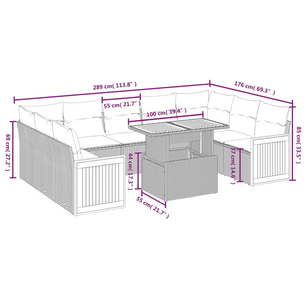 10 Piece Garden Sofa Set with Cushions Grey Poly Rattan
