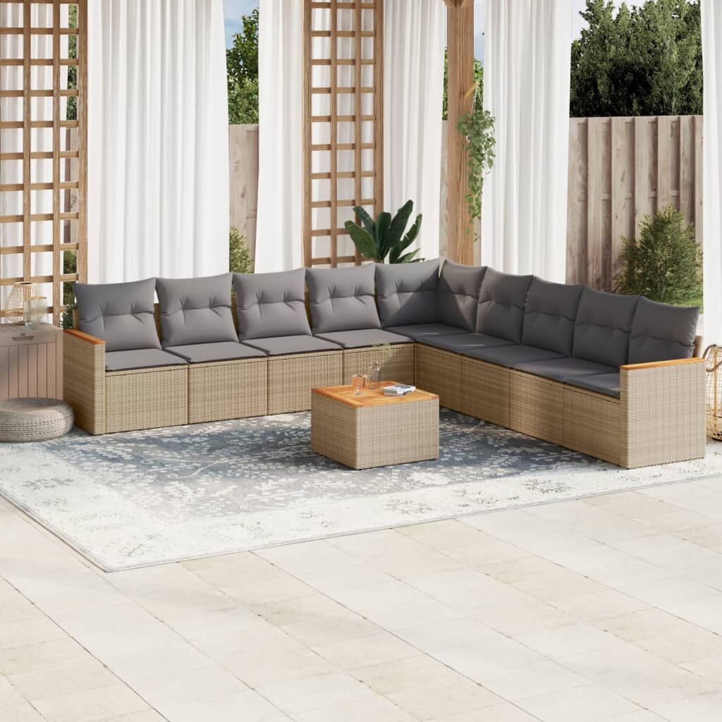 NOW $821.55This garden sofa set is the perfect addition to your backyard, terrace, or patio, providing a comfortable and inviting space for chatting with family and friends or simply relaxing and enjoying the outdoors. Durable material: PE rattan, also known as poly rattan, is a strong, low-maintenance synthetic material that looks like natural rattan. It's lightweight, easy to clean, and commonly used for outdoor furniture due to its durability and weather-resistant properties.Stable and easy-to-clean tabletop: This garden table has an acacia wood top that is sturdy, durable, and easy to clean with a damp cloth.Removable and washable cover: These seat cushions feature removable covers for easy washing and maintenance.Robust and stable frame: The powder-coated steel frame ensures that the garden furniture is strong and stable for daily outdoor use.Modular design: This outdoor furniture set has a modular design, making it completely flexible and easy to move around, so you can create a customised outdoor furniture arrangement. Good to know:To make sure your outdoor furniture stays beautiful, we recommend protecting it with a waterproof cover.