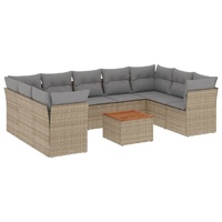 10 Piece Garden Sofa Set with Cushions Mix Beige Poly Rattan