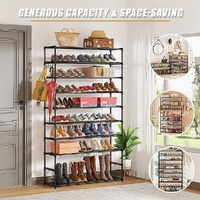 $57.33Are you tired of seeing shoes scattered all over the floor? Our 10-tier shoe rack offers a practical solution by providing ample storage space for every member of your family. From adult shoes to children's shoes, flats to sneakers, and even high-top shoes, this sleek and functional metal shoe shelf will offer them a sturdy home.