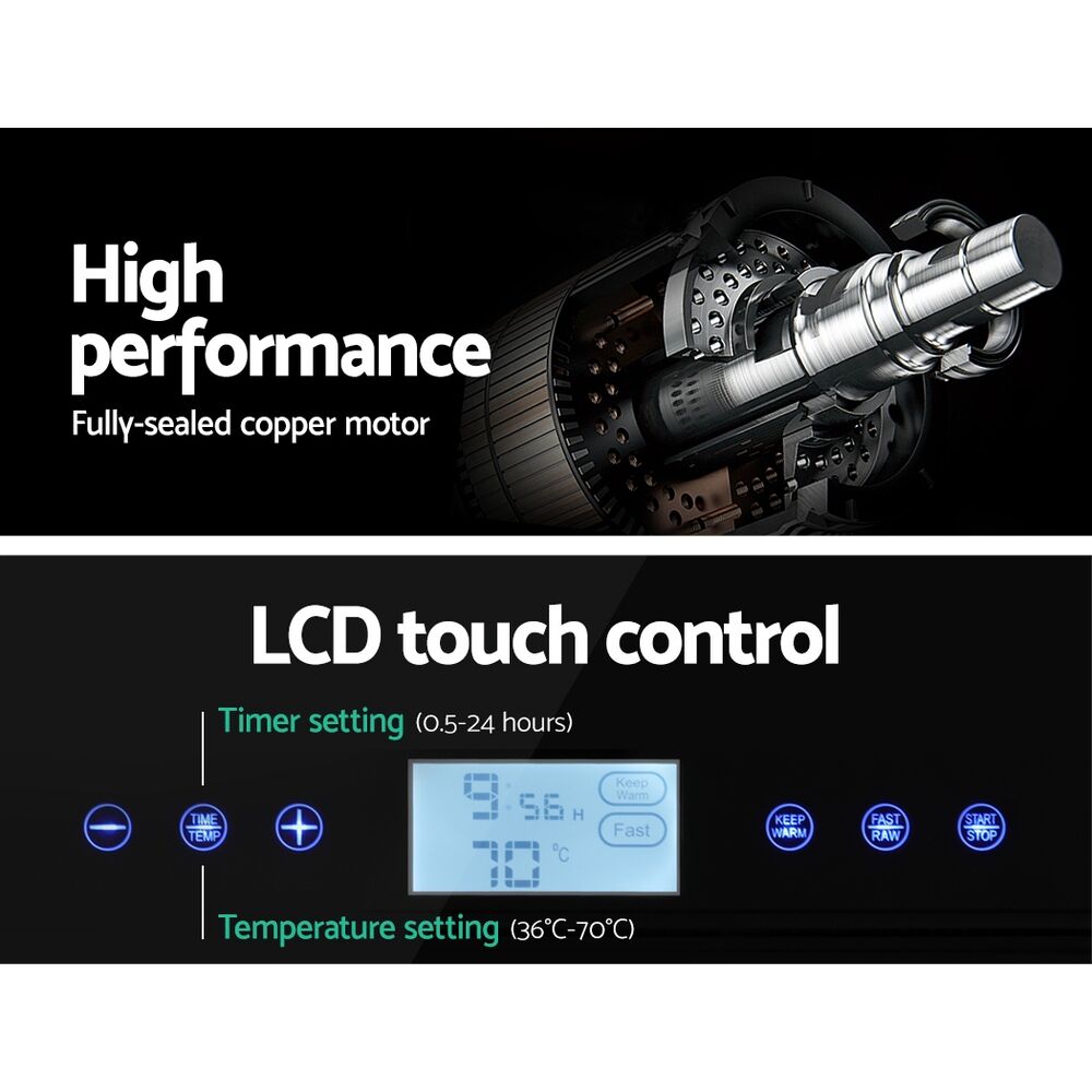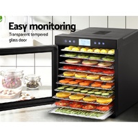 $187.05If you love healthy snacks or need to follow a diet plan, our Devanti Food Dehydrator is a must-have. Dehydrated foods have a longer shelf life and retain the same amount of vitamins and minerals as do their fresh counterparts. Even more so, with richer and more concentrated flavours. And our food dehydrator will set you up to enjoy all this delectable goodness by creating your very own, great tasting health foods. With its ten food-grade stainless steel food trays, our food dehydrator features a complete drying system with all the necessary controls to effectively dry vegetables, fruits, herbs, meat and more. The simple LCD touch control panel lets you adjust the temperature (35°C-70°C) and timer (0.5-24 hours) to suit what you are dehydrating, while the transparent tempered glass door lets you easily monitor the drying process. And when the drying is done, cleaning the removable trays is as simple as letting the dishwasher do all the work. Not least, the food dehydrator has overheating protection to ensure safe use and comes with a SAA-certified plug.