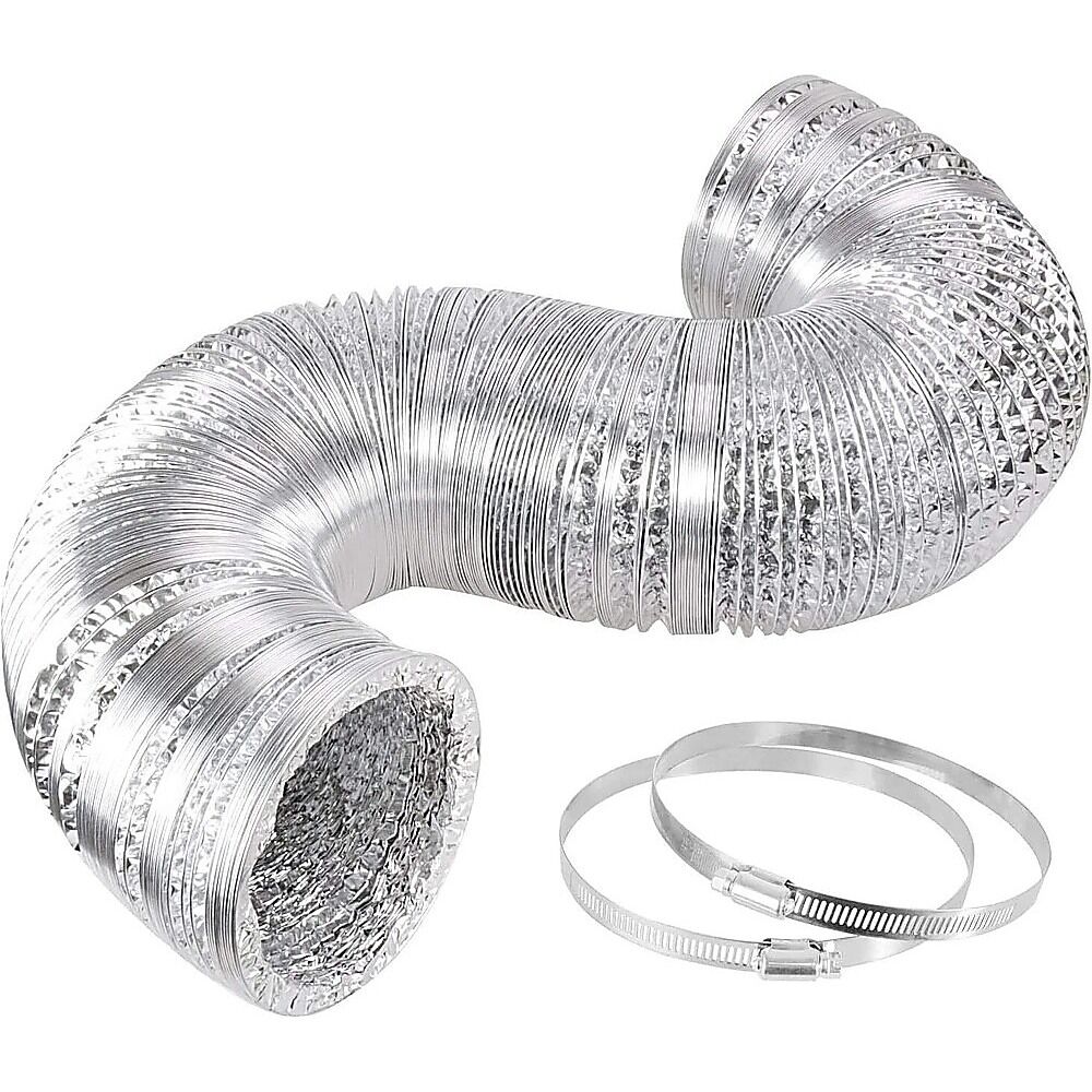 $26.05Upgrade your ventilation setup with this flexible 10.5cm x 7.6m aluminium air ducting hose. Built with triple-layer constructionaluminium foil + PET + aluminium foilthis durable and fire-resistant ducting is ideal for HVAC, dryer vents, grow tents, greenhouses, kitchens, and more. The flexible design, reinforced with a steel-wire helix, makes it easy to install in tight or hard-to-reach spaces. Includes stainless steel clamps for a secure fit and leak-proof performance.