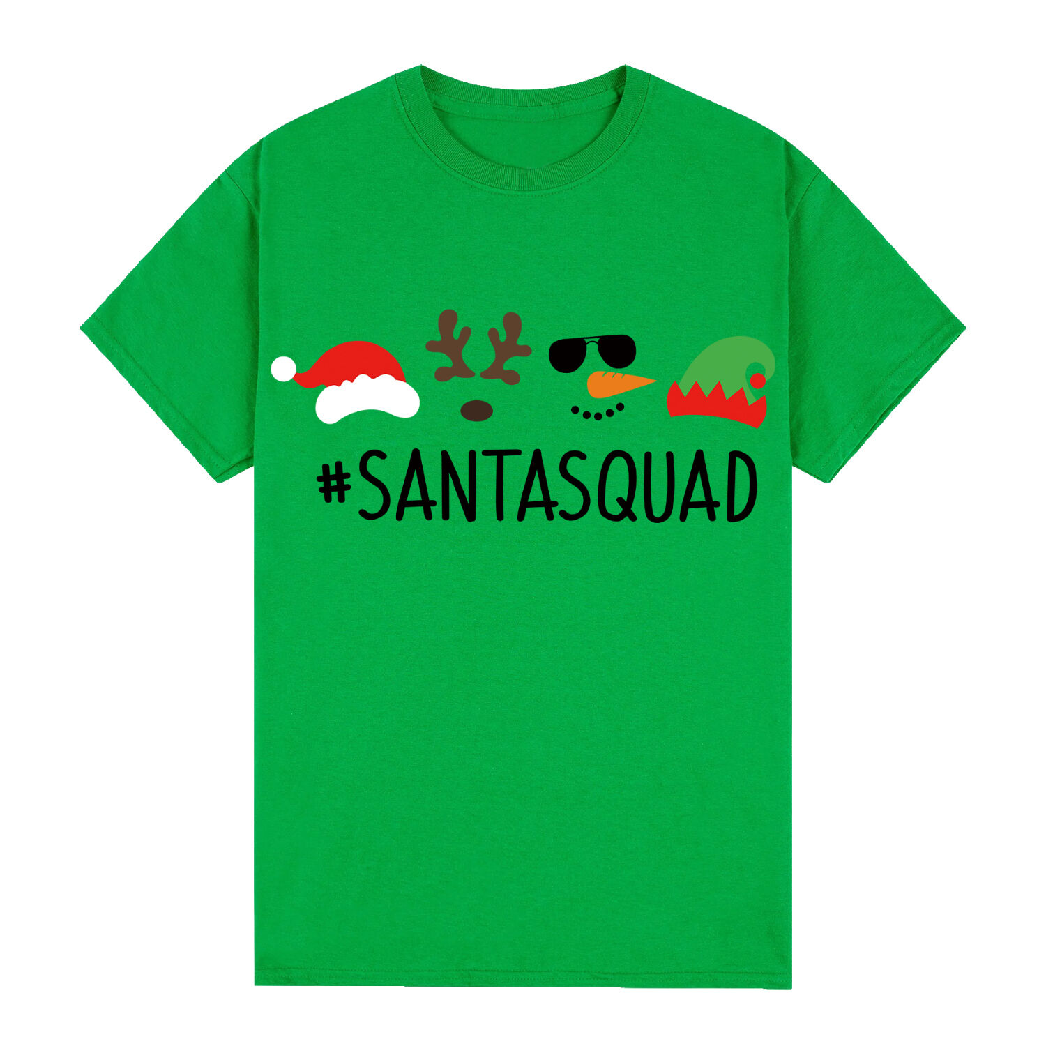 100% Cotton Christmas T-shirt Adult Unisex Tee Tops Funny Santa Party Custume, Santa Squad (Green)