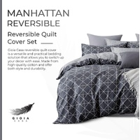 Product Description: Transform your bedroom into a stylish retreat with the 100% Cotton Reversible Printed Quilt Cover Set. This luxurious quilt cover set features a reversible design, allowing you to switch up your bedroom decor effortlessly. With vibrant colors and bold patterns, it's easy to change the look of your room by simply flipping the cover.