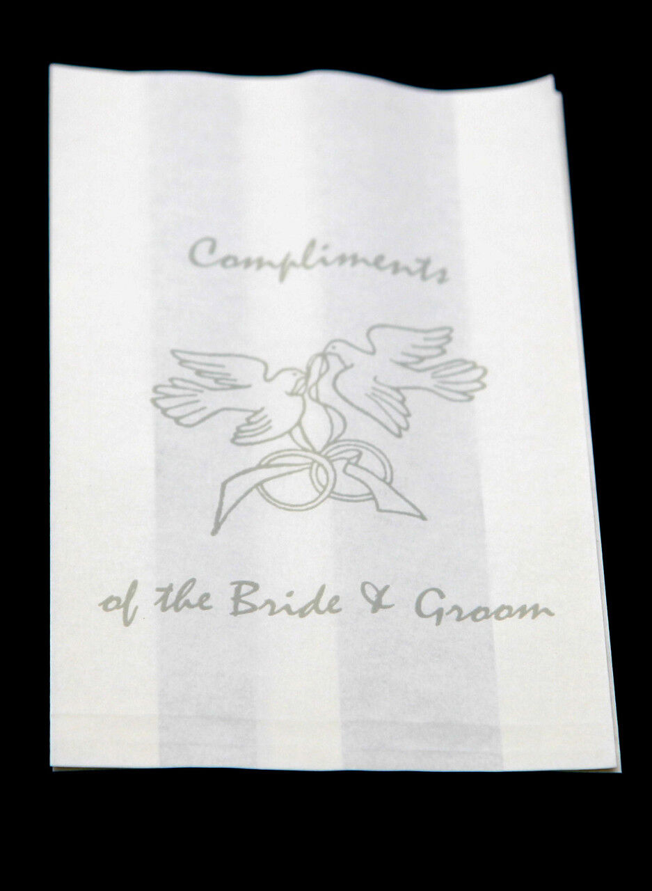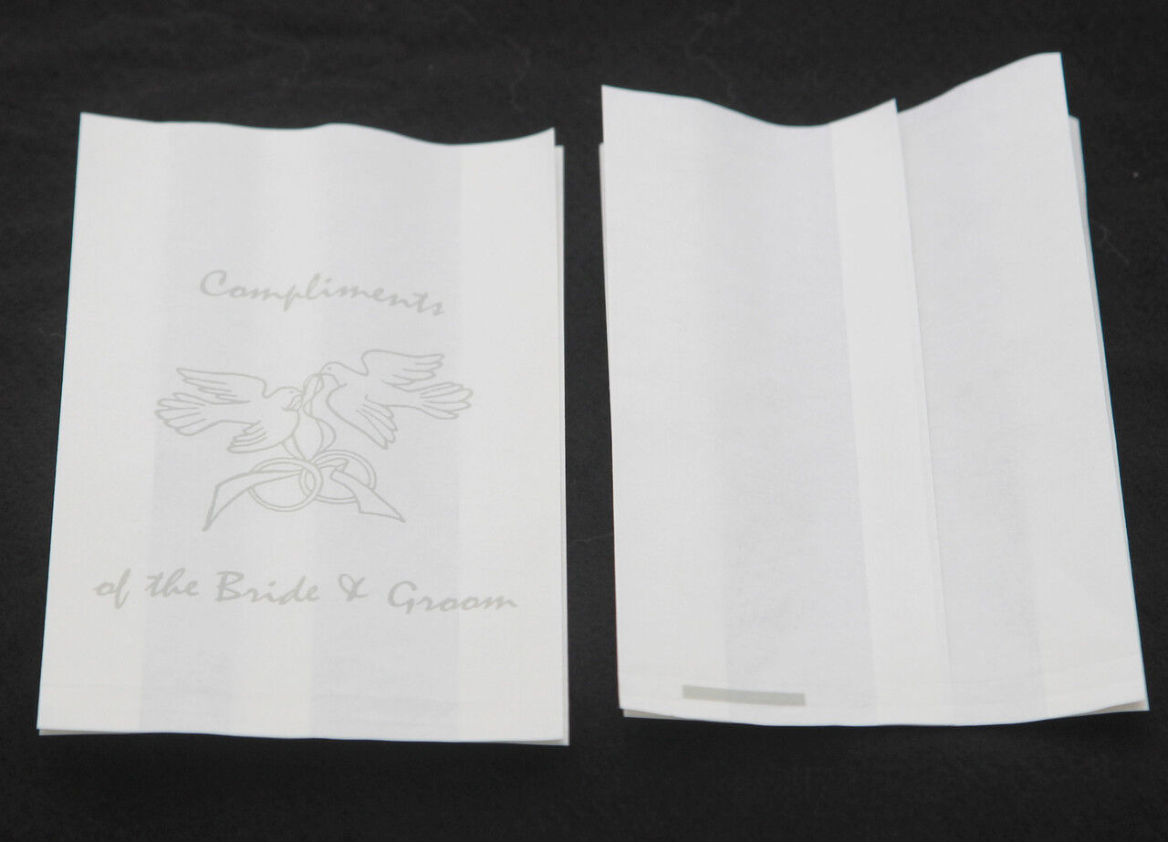 100 Pack Wedding Cake Bags Greaseproof Wax Paper Slice Take Home Favour Silver Doves