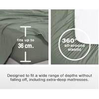 100% Vintage Washed Microfibre Fitted Sheet Set – Ultra Soft & Lightweight All-Season Fitted Sheet with 2 Pillowcases (Khaki Green, King Size)