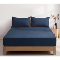100% Vintage Washed Microfibre Fitted Sheet Set – Ultra Soft & Lightweight All-Season Fitted Sheet with 2 Pillowcases (Navy Blue, King Size)