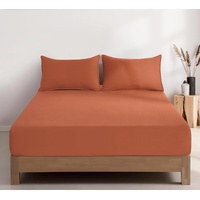 100% Vintage Washed Microfibre Fitted Sheet Set – Ultra Soft & Lightweight All-Season Fitted Sheet with 1 Pillowcase (Terracotta, Single Size)