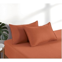 100% Vintage Washed Microfibre Fitted Sheet Set – Ultra Soft & Lightweight All-Season Fitted Sheet with 2 Pillowcases (Terracotta, Queen Size)