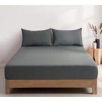100% Vintage Washed Microfibre Fitted Sheet Set – Ultra Soft & Lightweight All-Season Fitted Sheet with 2 Pillowcases (Grey, Queen Size)