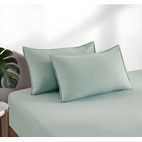 100% Vintage Washed Microfibre Fitted Sheet Set – Ultra Soft & Lightweight All-Season Fitted Sheet with 2 Pillowcases (Sage, Queen Size)