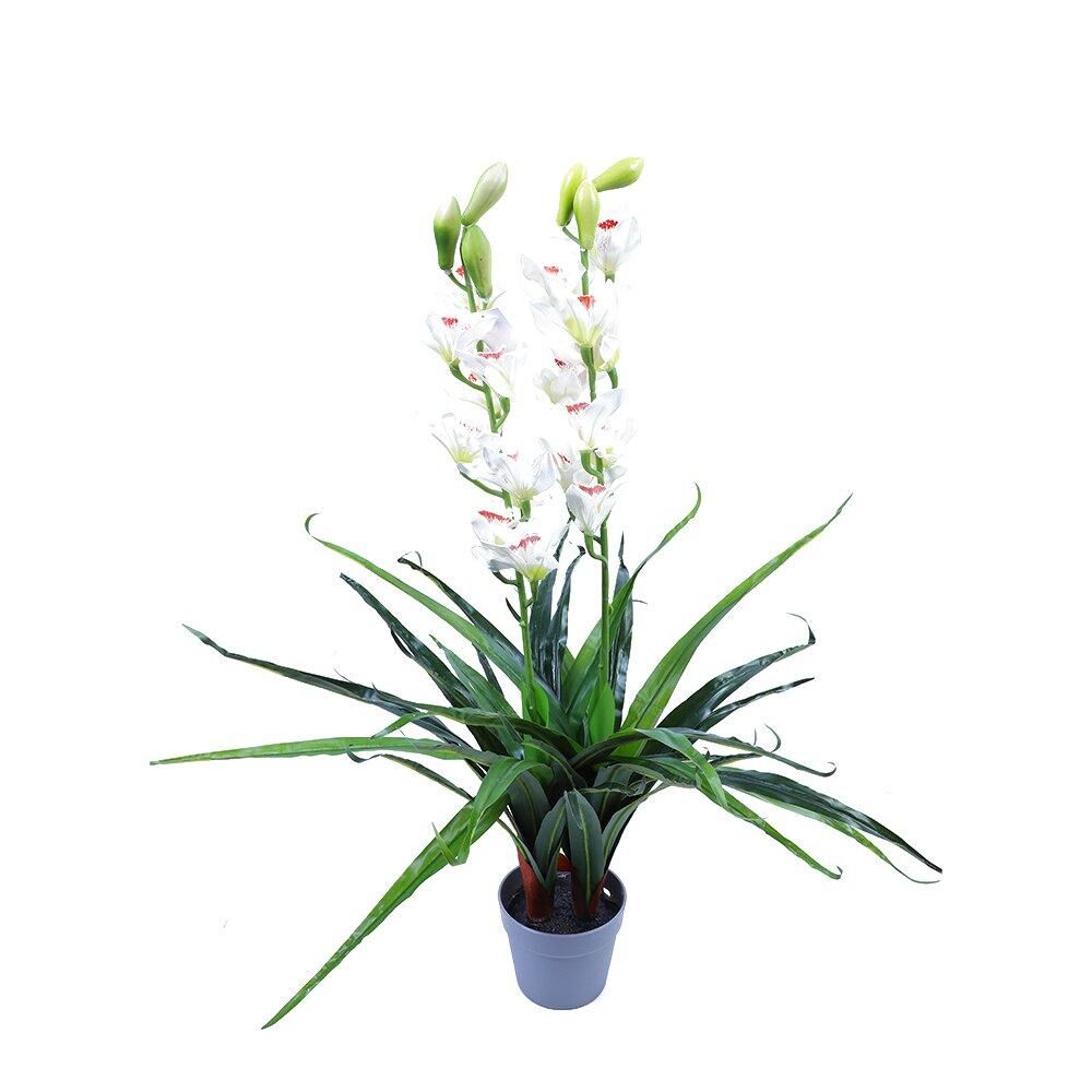 NOW $72.86A bold and visually striking artificial plant, this replica of the Cymbidium Orchid ooks fantastic as a table centrepiece or windowsill display. With the right colours offset by deep green realistic leaves, it is both vibrant and beautiful. We have other colours of this same plant available.