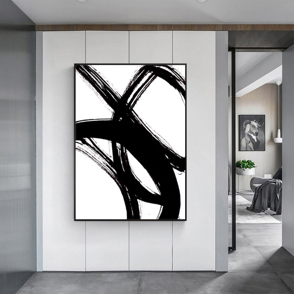 100cmx150cm Minimalist Black Artwork Black Frame Canvas Wall Art