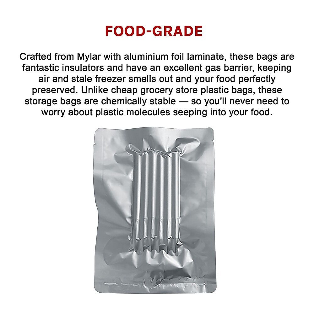 Not only are they freezer-safe, but you can also take them straight from the freezer into a boiling pot of water. They're light-proof and moisture-proof, so your food's colour and crispness will stay as fresh as the day you sealed them in the bag. If you have a sealing machine, these bags will help you get the most out of your investment. In fact, these bags are reason enough for you to buy a sealing machine they're that good. Don't wait to enjoy fresher food. Order your Mylar sealer bags today!