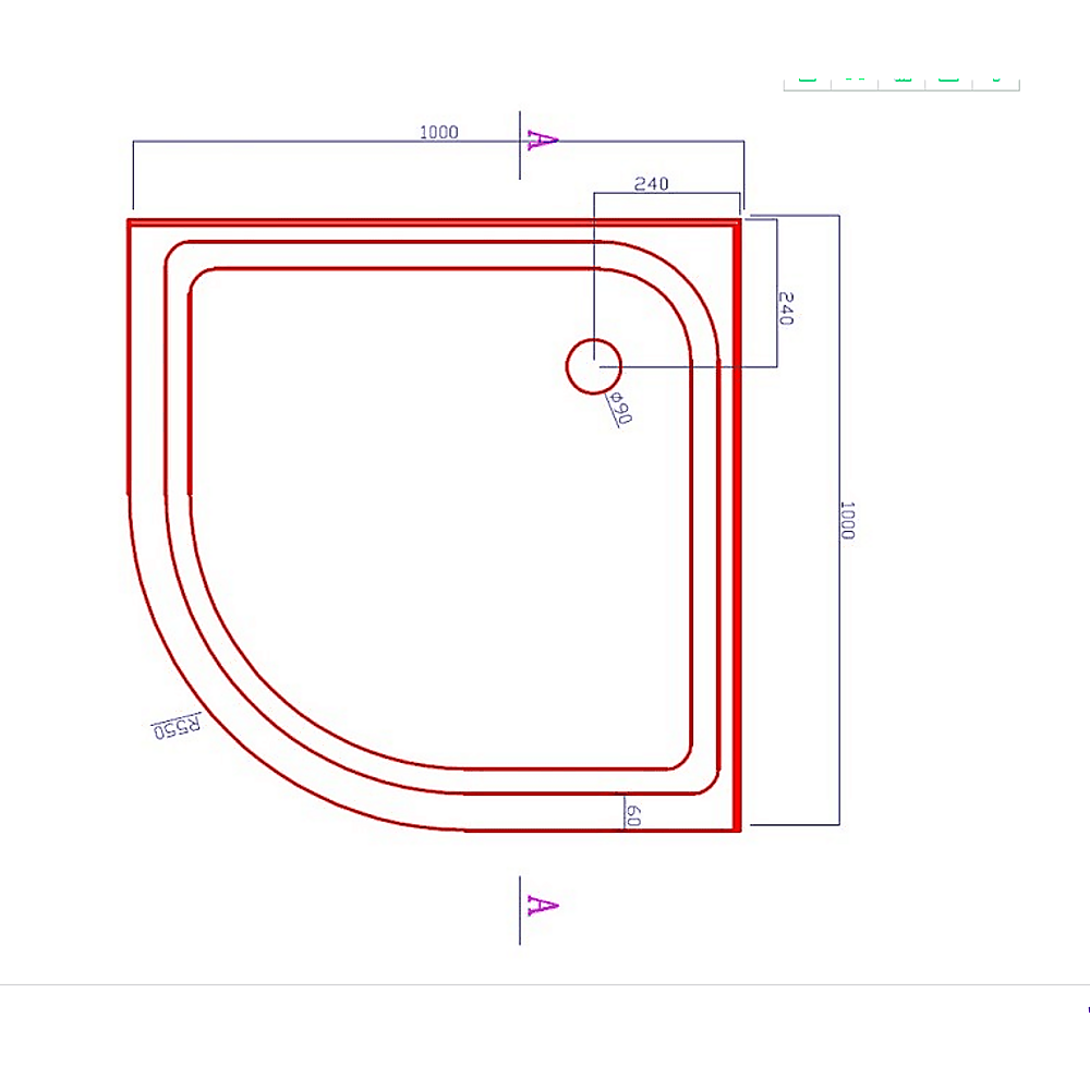 100 x 100cm Rounded Curved Shower Base in Black x 1
