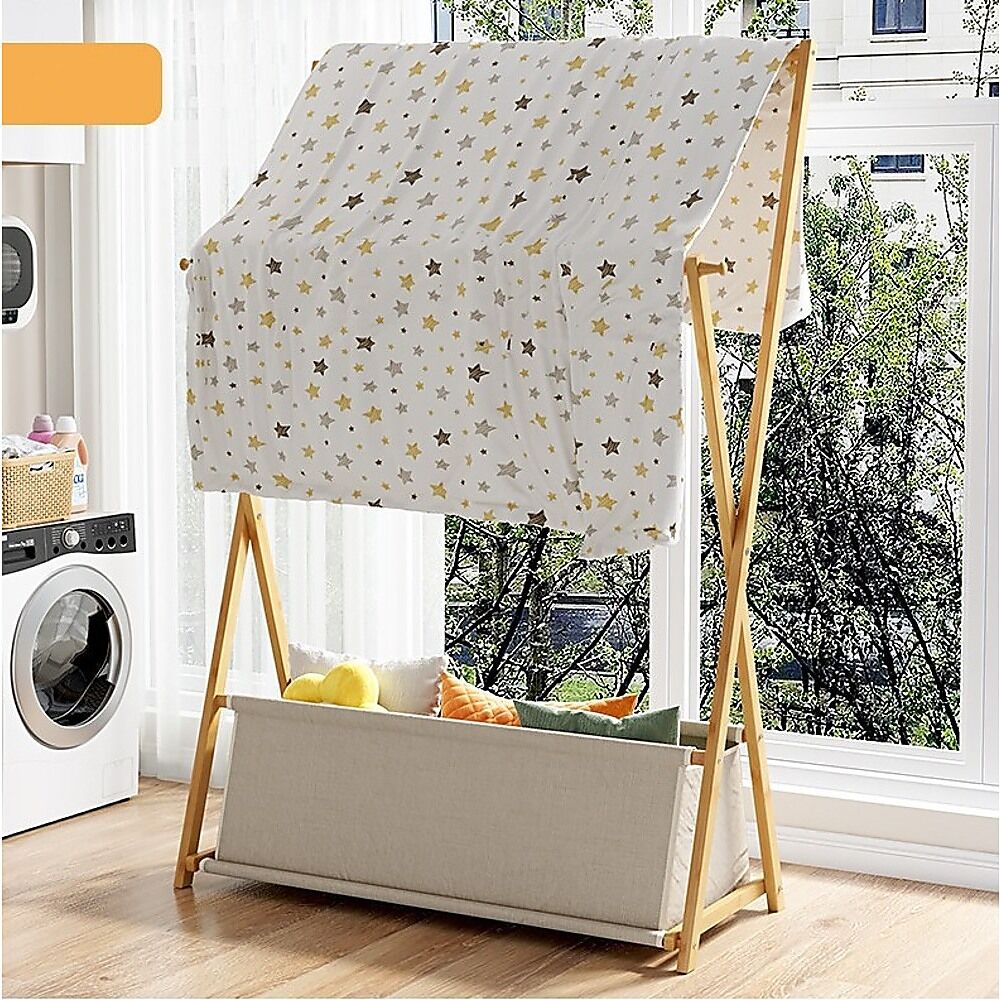 The solid and sturdy hanging rod ensures clothes remain stable without any bending. The mushroom-shaped hooks are meticulously smoothed to prevent items from slipping. The high-quality imitation linen fabric is not only wear-resistant but also resistant to pilling, effectively utilizing the available space. The coat rack is sanded to reveal the natural texture of the wood, omitting any artificial spray paint.