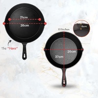 10inch 26cm Cast Iron Skillet Cookware Chef Quality Pre-Seasoned Pan Pans