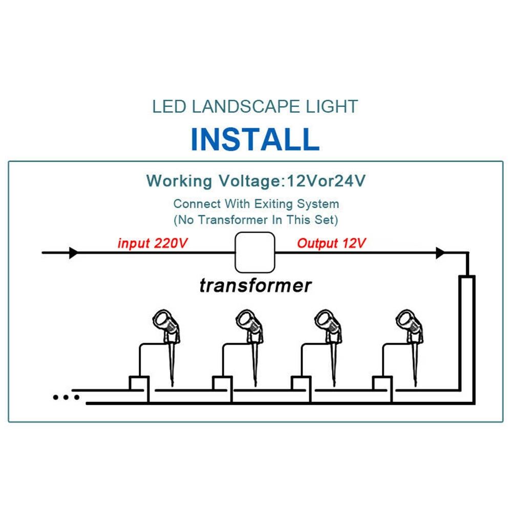 SAFE LOW VOLTAGE OUTDOOR USE: 12V working voltage compatible with most low voltage landscape lighting systems,extra low voltage transformer Required for installation (NOT INCLUDED in this set).