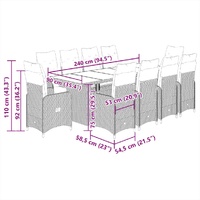 $1,517.39Enjoy a coffee or have a chat with your family and friends in the garden, backyard, or on the balcony with this comfortable bistro set! Durable material: PE rattan, also known as poly rattan, is a strong, low-maintenance synthetic material that looks like natural rattan. It's lightweight, easy to clean, and commonly used for outdoor furniture due to its durability and weather-resistant properties.Adjustable backrest and footrest: This garden seat has a handle. You can adjust the backrest and footrest to any position by pulling the handle, and quickly return it to its original position.Comfortable seat experience: This outdoor furniture, complete with thickly padded cushions, offers a comfortable seating experience.Removable and washable cover: These seat cushions feature removable covers for easy washing and maintenance. The back cushions have a flap at the back for easy attachment to the backrests.Glass tabletop: The outdoor table's top is made from strong and durable tempered glass, making it easy to clean with a damp cloth and adding a touch of elegance to your outdoor space. Good to know:To make sure your outdoor furniture stays beautiful, we recommend protecting it with a waterproof cover.