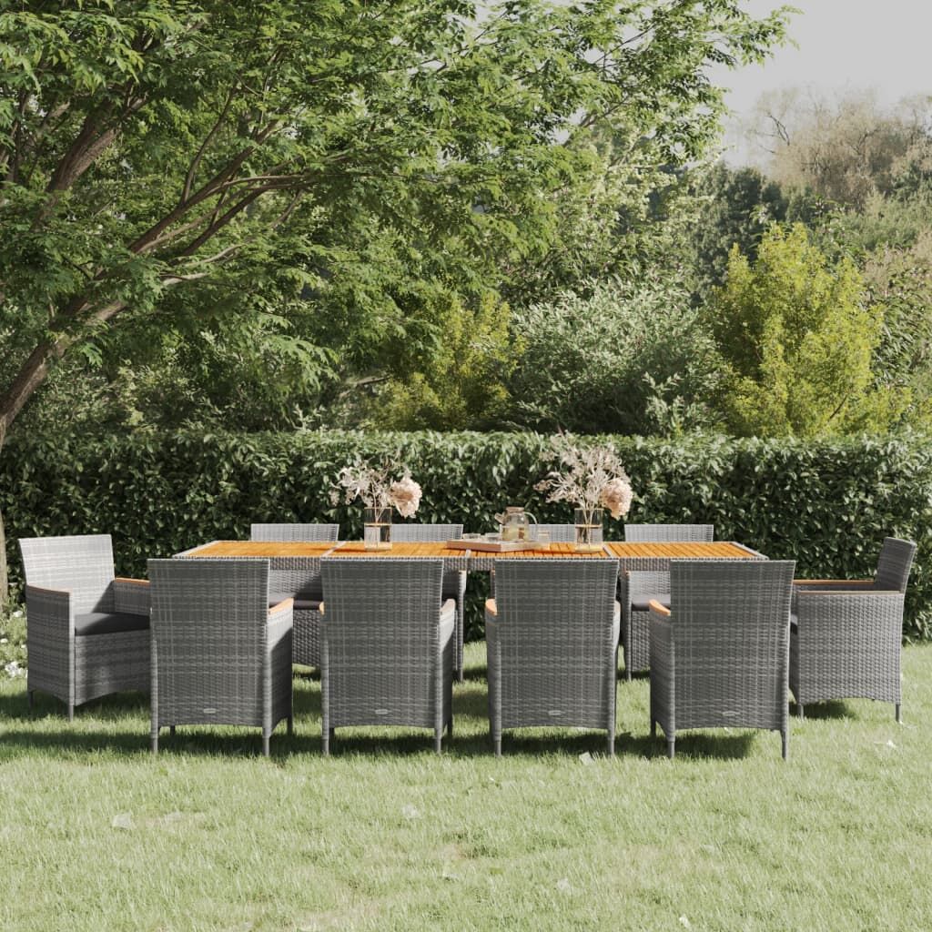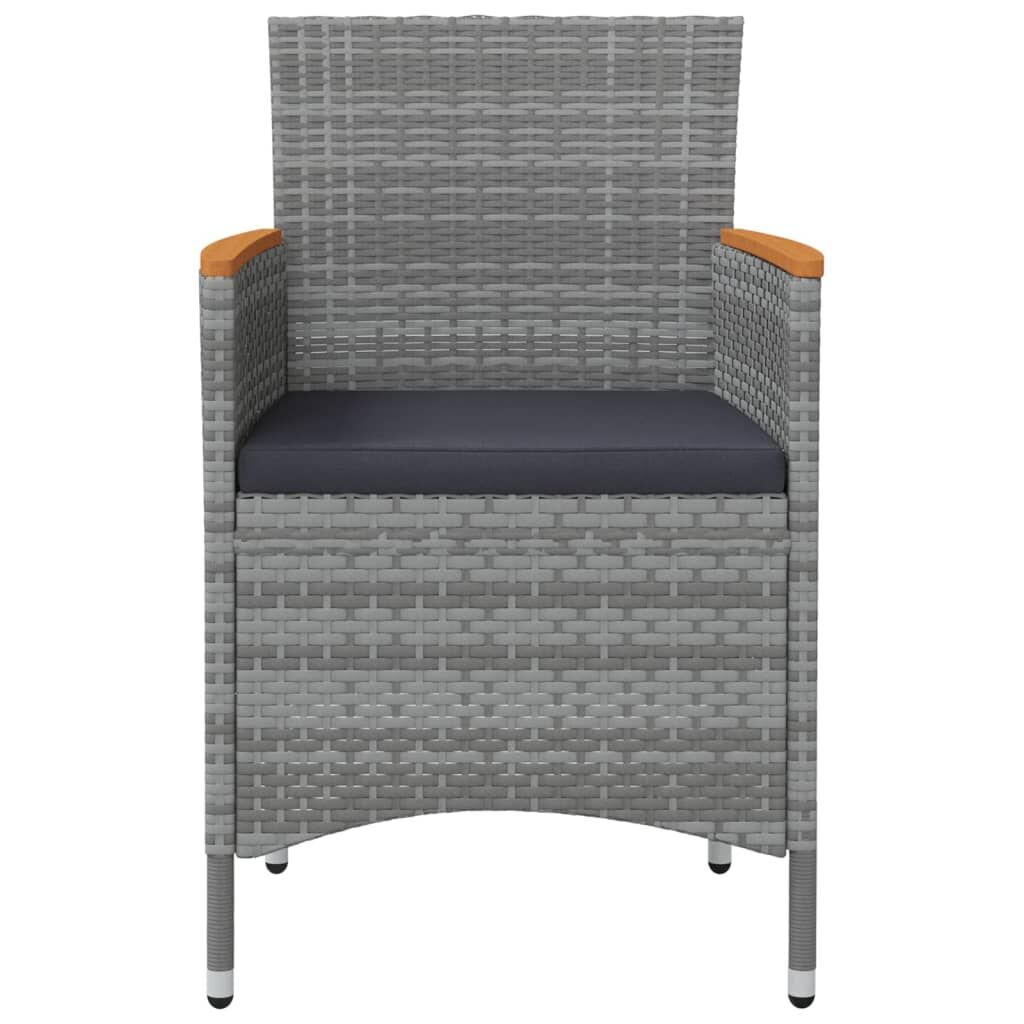 This garden dining set, with an elegant and contemporary design, will be a great choice for dining or relaxing in the garden. Durable material: Featuring the powder-coated steel frame wrapped with poly rattan, this outdoor dining set is durable and easy to clean.Comfortable armrest and backrest: The outdoor chair is designed with a curved backrest and armrests, making it an ergonomic shape for you.Soft cushion: The thick and soft seat cushion of the patio chair adds extra comfort while seating.Sturdy tabletop: This dinner table provides you with a sturdy tabletop. You can place your snacks, drinks and any of your favourite decorations. Note:In order to extend the life of your outdoor furniture, we recommend you to protect it with a waterproof cover.Each product comes with an assembly manual in the box for easy assembly.